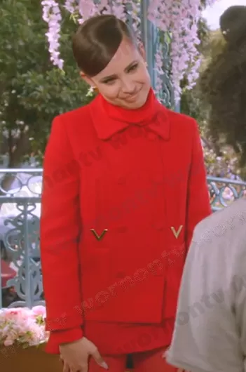 on American Idol on ABC was spotted wearing this red peacoat and mini skirt on American Idol on May 15 2023's episode. 's Coat is the Textured Double Crepe Peacoat by Valentino Garavani . 's Shorts is the Embellished Wool-Blend Crepe Shorts by Valentino Garavani . 's Shoes is the Tan-Go Patent-Leather Platform Pumps by Valentino Garavani.