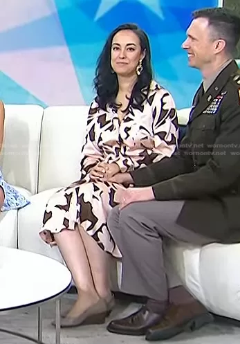 on Today on NBC was spotted wearing this pink and brown floral shirtdress on Today on May 12 2023's episode. 's Dress is the Printed Shirt Dress by Mango.