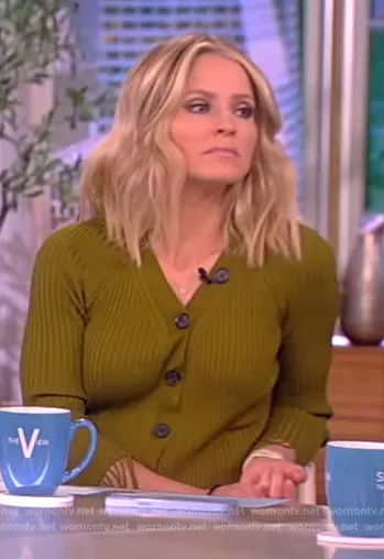 Sara Haines on The View on ABC was spotted wearing this green ribbed button down dress on The View on May 15 2023's episode. Sara's Dress is the Ribbed-knit Buttoned-up Dress by Proenza Schouler.