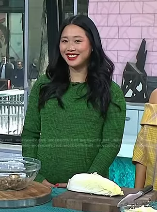 on Today on NBC was spotted wearing this green knit dress on Today on May 16 2023's episode. 's Dress is the Mélange Rib Long Sleeve Dress by Cos.