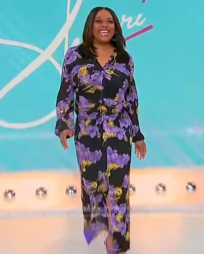 Sherri Shepherd on Sherri on FOX was spotted wearing this black floral print ruched maxi dress on Sherri on May 16 2023's episode. Sherri's Dress is the Floral Print Ruched Long Sleeve Mesh Maxi Dress by Topshop.