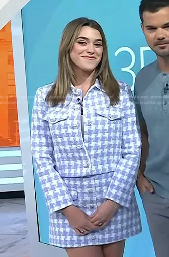 on Today on NBC was spotted wearing this blue houndstooth jacket and skirt on Today on May 16 2023's episode. 's Jacket is the Oleander Jacket by Amanda Uprichard . 's Skirt is the Oleander Skirt by Amanda Uprichard.