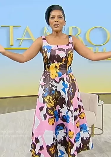 Tamron Hall on Tamron Hall Show on ABC was spotted wearing this floral print sleeveless dress on Tamron Hall Show on May 17 2023's episode. Tamron's Dress is the Mindscape printed recycled duchesse-satin midi dress by Christopher Kane.