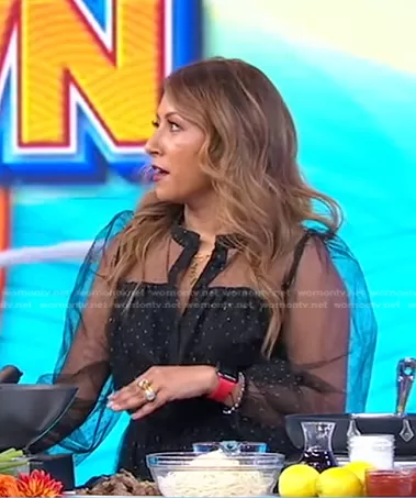 on Good Morning America on ABC was spotted wearing this black tulle dress on Good Morning America on May 17 2023's episode. 's Dress is the Point Desprit Dress by Adam Lippes Collective.