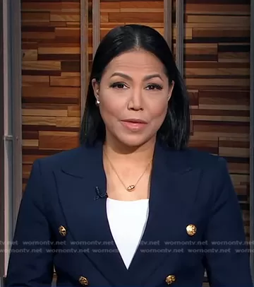 Stephanie Ramos on Good Morning America on ABC was spotted wearing this navy double breasted blazer on Good Morning America on Jun 09 2023's episode.