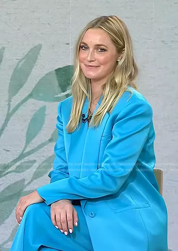 on Today on NBC was spotted wearing this blue pant suit on Today on May 18 2023's episode. 's Jacket is the Shan Strong Shoulder Blazer by Alice + Olivia . 's Pants is the Atia Trousers by Alice + Olivia.