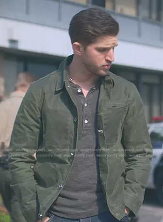 Joaquin Peréz (played by Bryan Craig) on Good Trouble on Freeform was spotted wearing this green waxed jacket on Good Trouble on episode 'Opening Night' (5x10) in May 2023. 's Jacket is the Waxed Ridgeline Supply Jacket by Rogue Territory.
