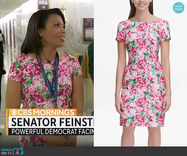 Nikole Killion on CBS Mornings on CBS was spotted wearing this floral sheath dress on CBS Mornings on May 19 2023's episode. Nikole's Dress is the Floral Scuba Sheath Dress by Calvin Klein .