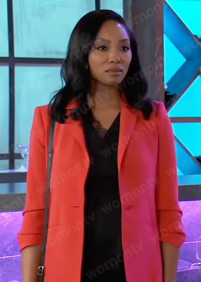 Jordan Ashford (played by Tanisha Mariko Harper) on General Hospital on ABC was spotted wearing this pink blazer on General Hospital on May 19 2023's episode. Jordan's Jacket is the Khloe Blazer in Berry Jam by Cinq a Sept.