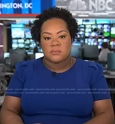 on NBC News Daily on NBC was spotted wearing this blue dress on NBC News Daily on May 18 2023's episode. 's Dress is the Seamed Scuba Crepe Sheath Dress by Calvin Klein.