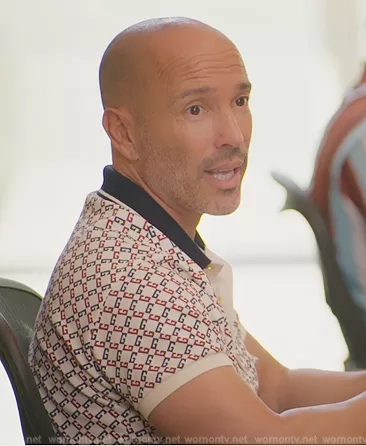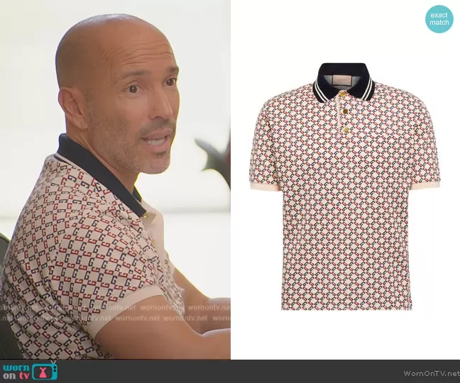 on Selling Sunset on Netflix was spotted wearing this white Gucci polo on Selling Sunset on episode 'I Wanted to Hate You' (6x01) in May 2023. 's Shirt is the Monogram Logo Shirt by Gucci.
