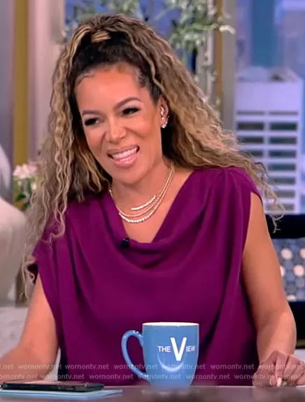 Sunny Hostin on The View on ABC was spotted wearing this floral print pants and drape top on The View on May 22 2023's episode. Sunny's Top is the Hamels Off-The-Shoulder Sweater by Dries Van Noten . Sunny's Pants is the Hadium Floral Wide-Leg Pants by Dries Van Noten.