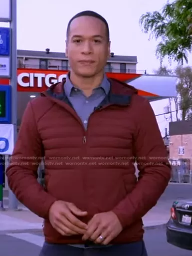 on Good Morning America on ABC was spotted wearing this burgundy down jacket on Good Morning America on May 23 2023's episode. 's Jacket is the Down For It All Hoodie by Lululemon.