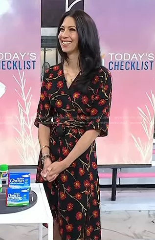 on Today on NBC was spotted wearing this black floral wrap dress on Today on May 23 2023's episode. 's Dress is the Eloise Dress by Diane von Furstenberg.