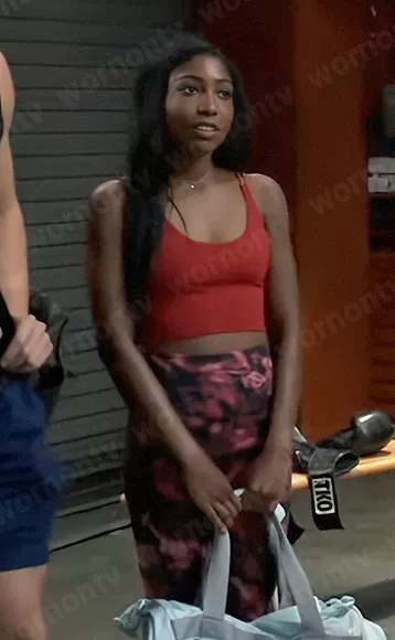 Trina Robinson (played by Tabyana Ali) on General Hospital on ABC was spotted wearing this pink printed leggings on General Hospital on Apr 17 2024's episode. Trina's Leggings is the Align Tights in Intensity Pink Blossom by Lululemon.