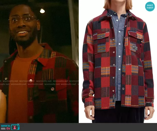 Chester Phineas Runk (played by Brandon McKnight) on The Flash on The CW was spotted wearing this red patchwork shirt on The Flash on episode 'A New World - Part 4' (9x13) in May 2023. Chester's Shirt is the Jacquard Patchwork Snap-Up Shirt Jacket by Scotch and Soda.