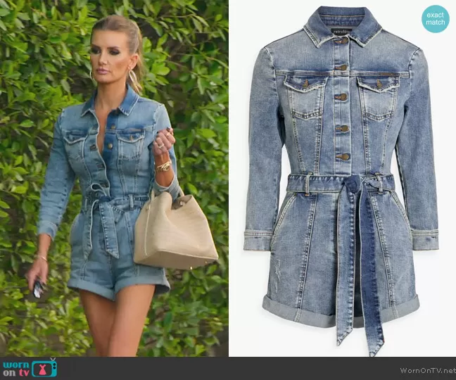 Nicole Young on Selling Sunset on Netflix was spotted wearing this denim romper on Selling Sunset on episode 'Between You and Bre' (6x04) in May 2023. Nicole's Romper is the Kerry belted denim playsuit by Retrofete.
