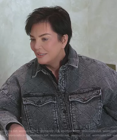 Kris Jenner (played by Kris Jenner) on The Kardashians on Hulu was spotted wearing this black washed quilted jacket on The Kardashians on episode 'Can Everyone Get Their Sh*t Together?' (3x01) in May 2023. Kris's Jacket is the Quilted Denim Jacket by Good American.