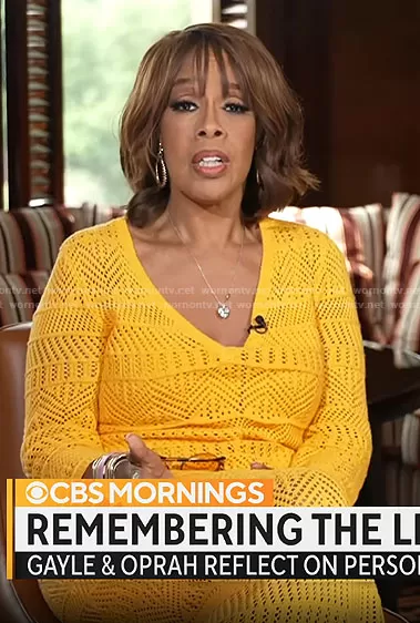 Gayle King’s yellow square-neck midi dress on CBS Mornings