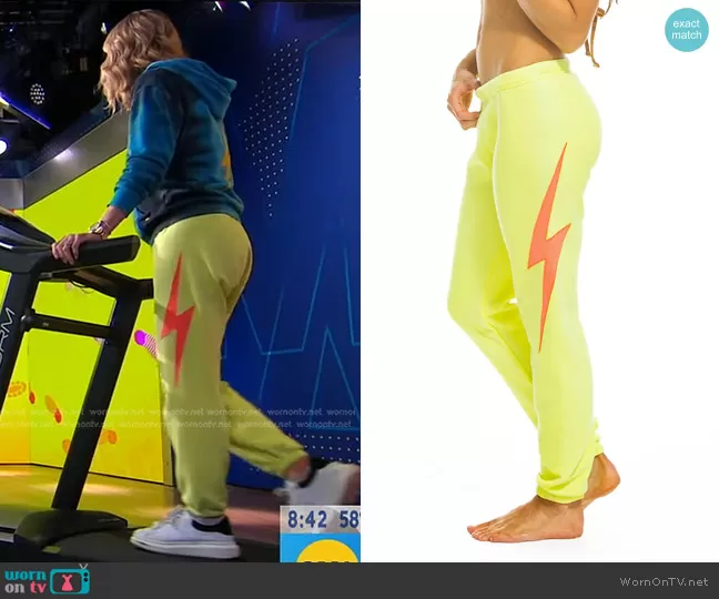 Lara Spencer on Good Morning America on ABC was spotted wearing this yellow sweatpants on Good Morning America on May 24 2023's episode. Lara's Pants is the Aviation Nation Bolt Stitch Sweatpants by Aviator Nation.