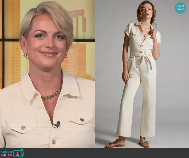 Jamie Yuccas on CBS Mornings on CBS was spotted wearing this ivory jumpsuit on CBS Mornings on May 26 2023's episode. Jamie's Jumpsuit is the Anessa Jumpsuit by Paige .