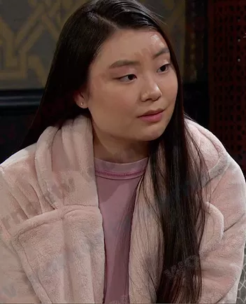 Wendy Shin (played by Victoria Grace) on Days of our Lives on Peacock was spotted wearing this pink crewneck tee on Days of our Lives on May 29 2023's episode. Wendy's Top is the Care FP Let It Roll Tee by Free People.