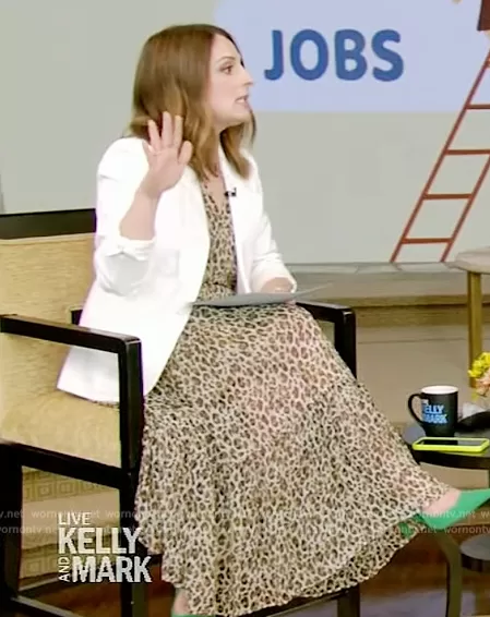 on Live with Kelly and Mark on Disney ABC Home Entertainment was spotted wearing this leopard print dress on Live with Kelly and Mark on May 29 2023's episode. 's Dress is the Tobey Leopard Silk Tiered Midi Dress by Joie.