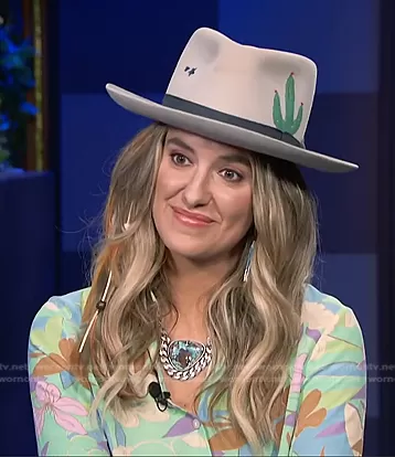 on E! News on E! was spotted wearing this floral shirt on E! News on May 14 2023's episode. 's Top is the Floral Button-Up Shirt by Sanctuary.