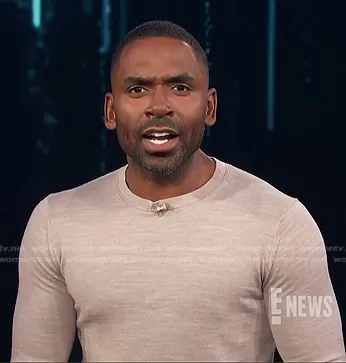 Justin Sylvester on E! News on E! was spotted wearing this beige crewneck sweater on E! News on May 10 2023's episode. Justin's Sweater is the Wessex Crewneck Wool Sweater by Reiss.