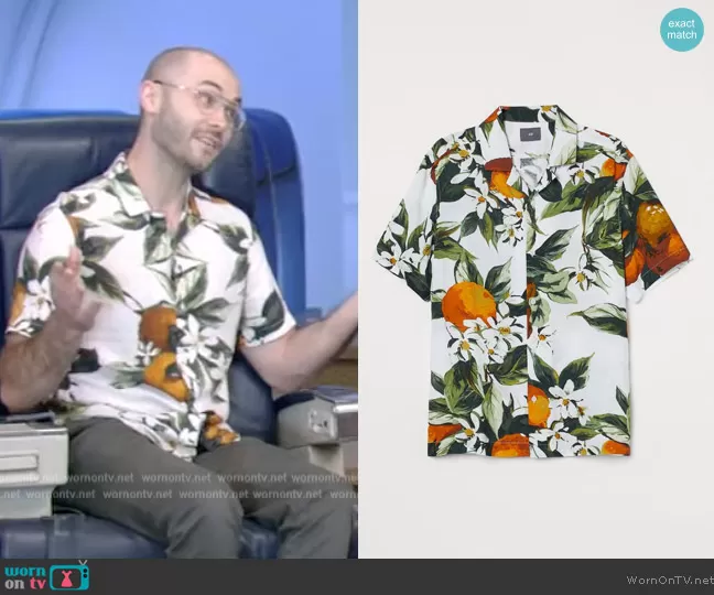 on Live with Kelly and Mark on Disney ABC Home Entertainment was spotted wearing this Scott Keyes’ white floral print shirt on Live with Kelly and Mark on May 30 2023's episode. 's Shirt is the Relaxed Fit Patterned Resort Shirt by H&M.