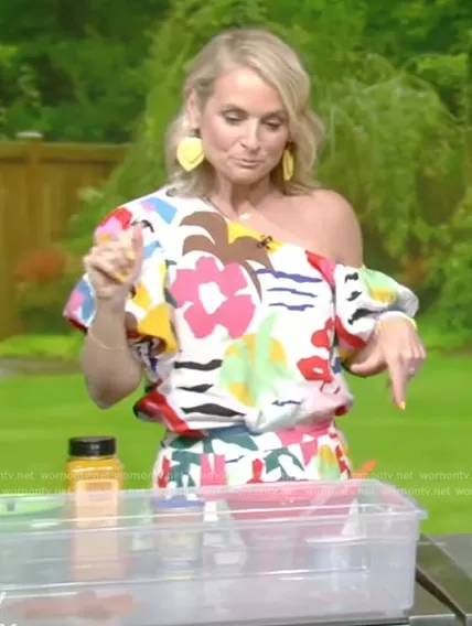 on Live with Kelly and Mark on Disney ABC Home Entertainment was spotted wearing this white floral print top and skirt on Live with Kelly and Mark on May 31 2023's episode. 's Top is the Palmer Top in Yamas by Crosby by Mollie Burch . 's Skirt is the Mallie Skirt in Yamas by Crosby by Mollie Burch.