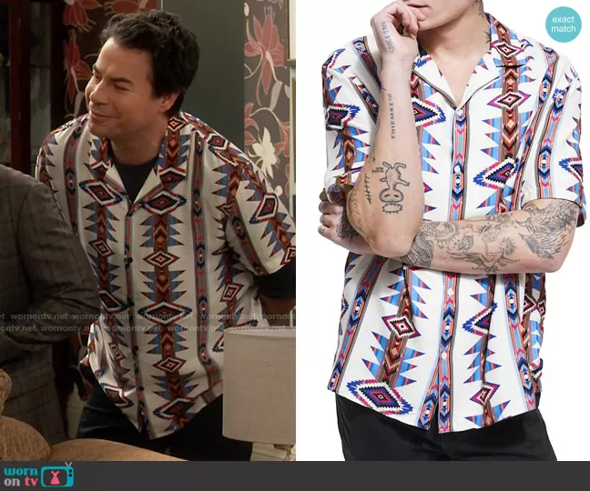 Spencer Shay (played by Jerry Trainor) on iCarly on Paramount+ was spotted wearing this white geometric print shirt on iCarly on episode 'iBuckled' (3x01) in Jun 2023. Spencer's Shirt is the Geometric-Print Loose Fit Shirt by The Kooples.