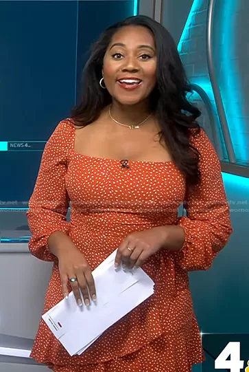 Kay Angrum on NBC News Daily on NBC was spotted wearing this orange printed dress on NBC News Daily on Jun 01 2023's episode. Kay's Dress is the Printed Square-Neck Fit & Flare Dress by City Studios.