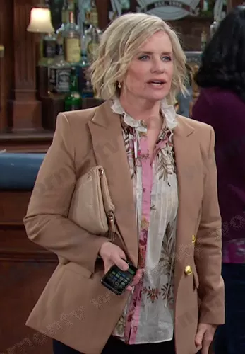 Kayla Brady (played by Mary Beth Evans) on Days of our Lives on Peacock was spotted wearing this floral blouse and beige blazer on Days of our Lives on Jun 02 2023's episode. Kayla's Top is the Joanna Floral Pleated Blouse by Kobi Halperin . Kayla's Jacket is the Preston Double-Breasted Blazer by Rag & Bone.