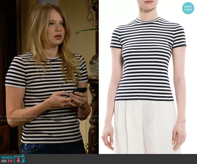 Theory Tiny Stripe Tee worn by Summer Newman (Allison Lanier) on The Young and the Restless