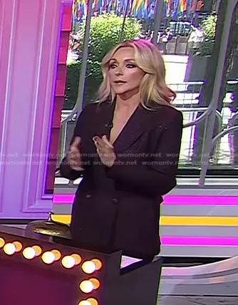 on Today on NBC was spotted wearing this metallic pant suit on Today on Jun 01 2023's episode. 's Jacket is the Double Breasted Jacket in Wool Lurex by Akris . 's Pants is the Double Face Pant in Wool Lurex by Akris.