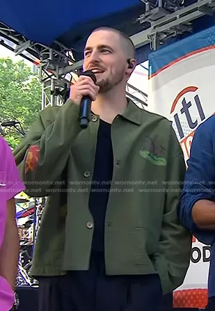 on Today on NBC was spotted wearing this green print jacket on Today on Jun 02 2023's episode. 's Jacket is the Hand Art Work Jacket in Olive by Profound.
