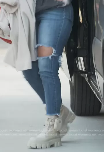 on The Real Housewives of Atlanta on Bravo was spotted wearing this white leather boots on The Real Housewives of Atlanta on episode 'The Buck Stops in Birmingham' (15x04) in Jun 2023. 's Shoes is the Monolith leather ankle boots by Prada.