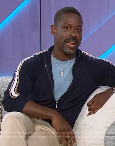 Eleventy Side stripe detail sweatshirt worn by Sterling Brown on The Kelly Clarkson Show