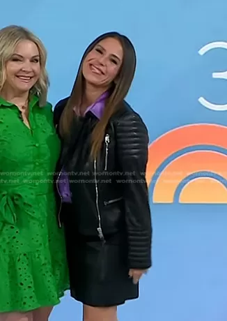 on Today on NBC was spotted wearing this black leather moto jacket on Today on Jun 06 2023's episode. 's Jacket is the Leoni Biker Jacket by All Saints.