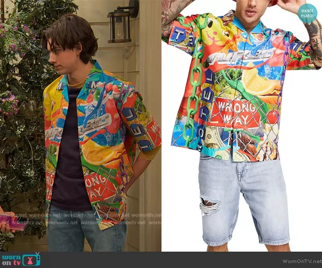 Neil (played by Felix Avitia) on Ravens Home on Disney was spotted wearing this printed shirt on Ravens Home on episode 'Tess Friends Forever' (6x05) in May 2023. Neil's Shirt is the Fairground Print Cotton Button-Up Shirt by Topman.