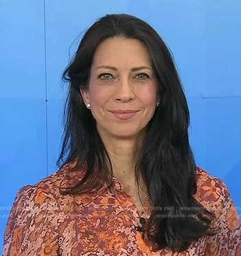 Dr. Natalie Azar on Today on NBC was spotted wearing this orange abstract print blouse on Today on Jun 07 2023's episode. Natalie A's Top is the Lar Top by Rococo Sand.