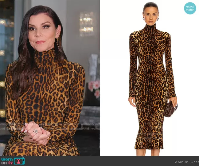 Heather Dubrow on The Real Housewives of Orange County on Bravo was spotted wearing this leopard confessional dress on The Real Housewives of Orange County on episode 'Here Comes the Judge' (17x01) in Jun 2023. Heather's Dress is the Long Sleeve Turtleneck Fishtail Dress by Norma Kamali.