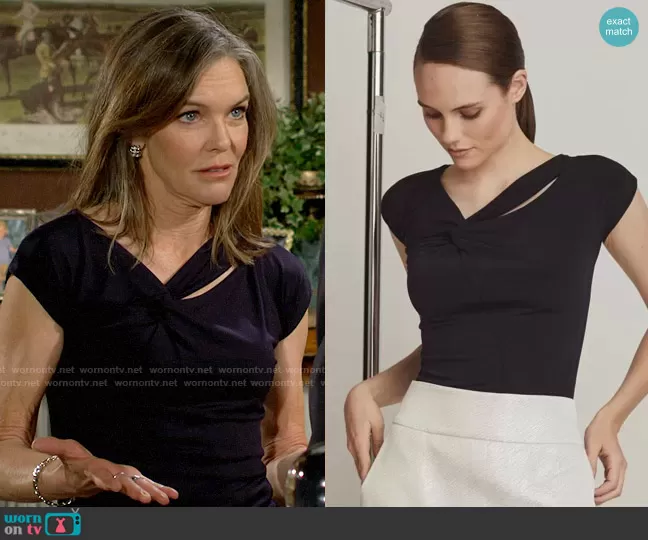 Joeffer Caoc Jersey Twist Front Top in Navy worn by Diane Jenkins (Susan Walters) on The Young and the Restless