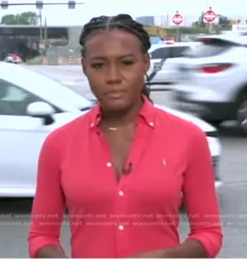 Janai Norman on Good Morning America on ABC was spotted wearing this pink button down shirt on Good Morning America on Jun 12 2023's episode. Janai's Top is the Button-Down Collar Shirt by Polo Ralph Lauren.