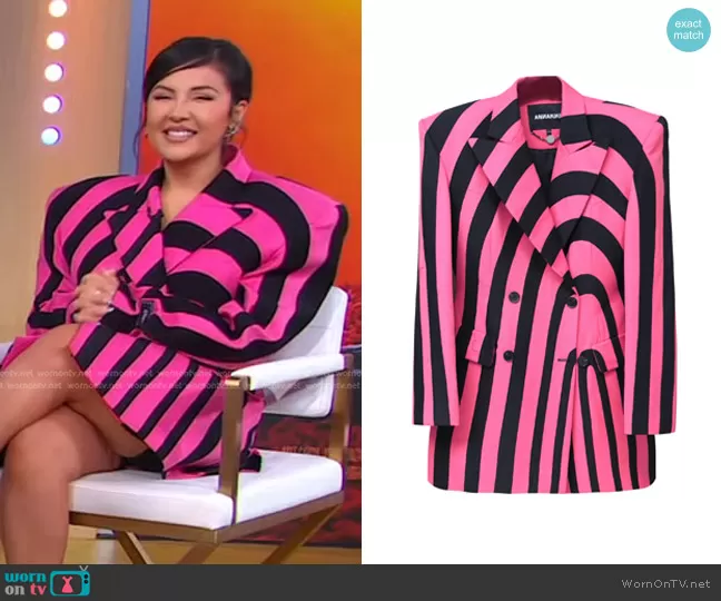 on Good Morning America on ABC was spotted wearing this black and pink striped blazer on Good Morning America on Jun 12 2023's episode. 's Jacket is the Wool Fractal Suit by Annakiki.