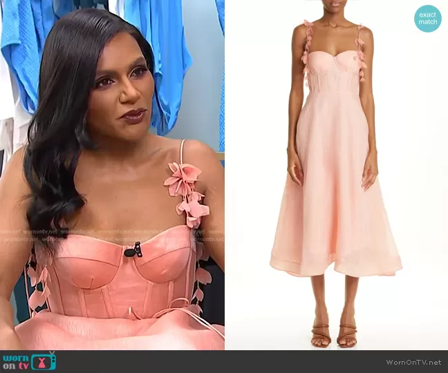 on E! News on E! was spotted wearing this pink corset dress on E! News on Jun 08 2023's episode. 's Dress is the Wonderland Linen & Silk Corset Dress by Zimmermann.