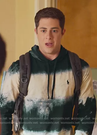 (played by Jaren Lewison) on Never Have I Ever on Netflix was spotted wearing this tie dye hoodie on Never Have I Ever on episode 'Gotten Sweet Revenge' (4x02) in Jun 2023. 's Sweater is the Tie-Dye Jersey Hooded T-Shirt by Ralph Lauren.