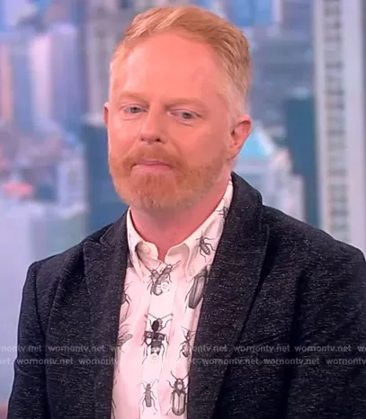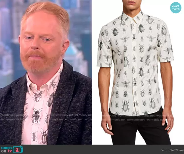 on The View on ABC was spotted wearing this white but print button down shirt on The View on Jun 13 2023's episode. 's Shirt is the Bug-Print Short-Sleeve Sport Shirt by Alexander McQueen.