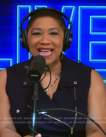 Deja Vu on Live with Kelly and Mark on Disney ABC Home Entertainment was spotted wearing this navy utility dress on Live with Kelly and Mark on May 14 2024's episode. Deja Vu's Dress is the Notch Collar Zip Front Belted Sleeveless Scuba Crepe Shirt Dress by Calvin Klein.